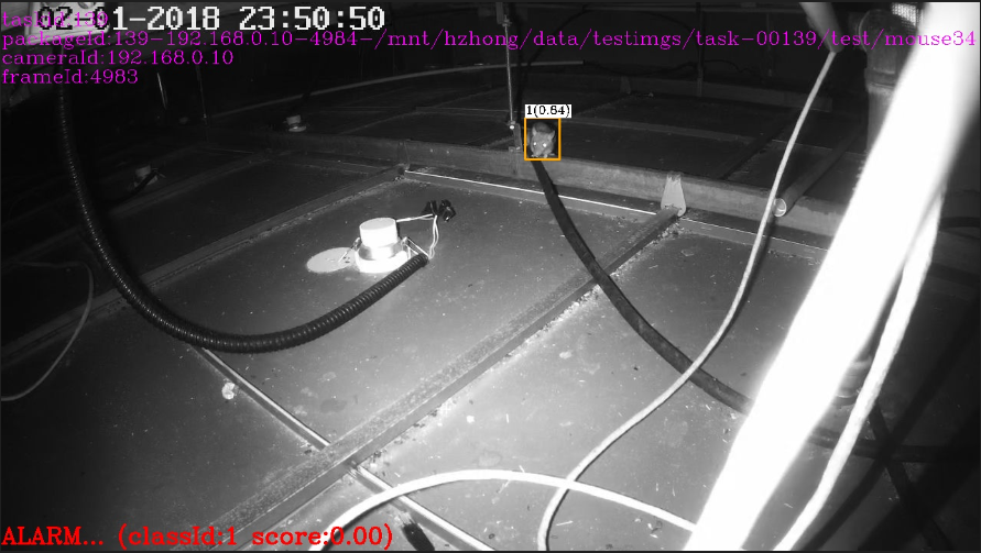 鼠患識別算法是針對廚房檢測場景,識別是否有老鼠出現,若有則立即輸出報警信息。